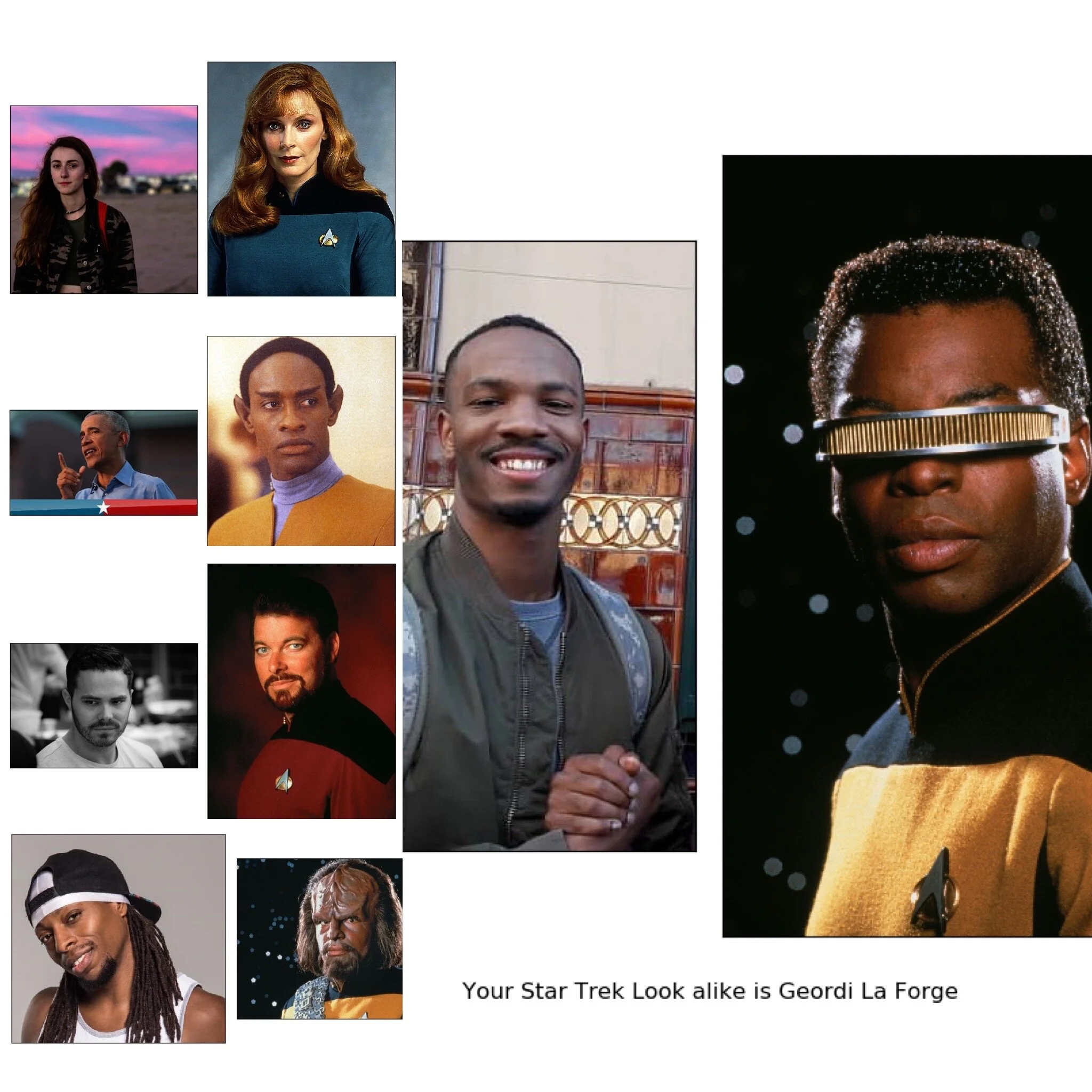 This application is a delightful intersection of fandom and technology, specifically designed for Star Trek enthusiasts and machine learning aficionados. If you've ever been curious about which Star Trek character you resemble, this tool is for you. Leveraging the capabilities of a pre-trained VGG-16 neural network model, the application offers an engaging way to find your Star Trek doppelgänger.